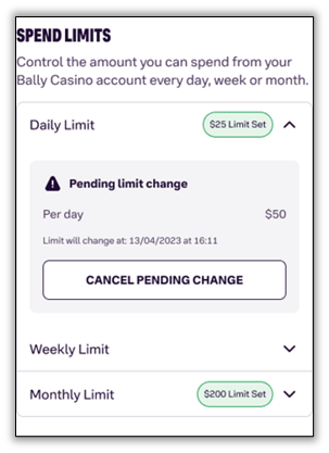 For example, if you deposit $100 and have a daily spending limit of $20, after wagering $10 and winning $50, your balance will be $140. You can then wager a total of $60, as the Spending Limit only restricts your spending of deposited or bonus funds, not your winnings